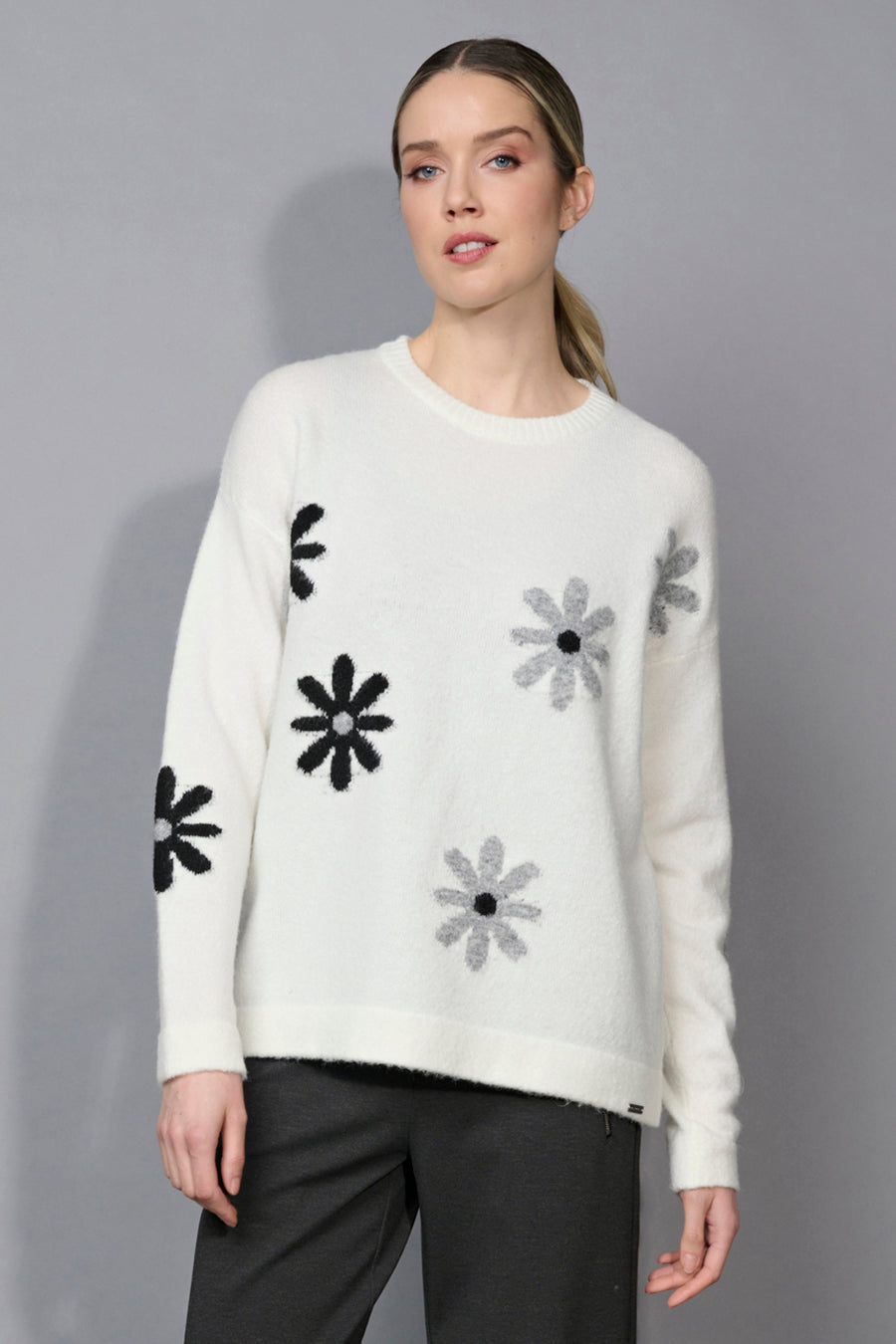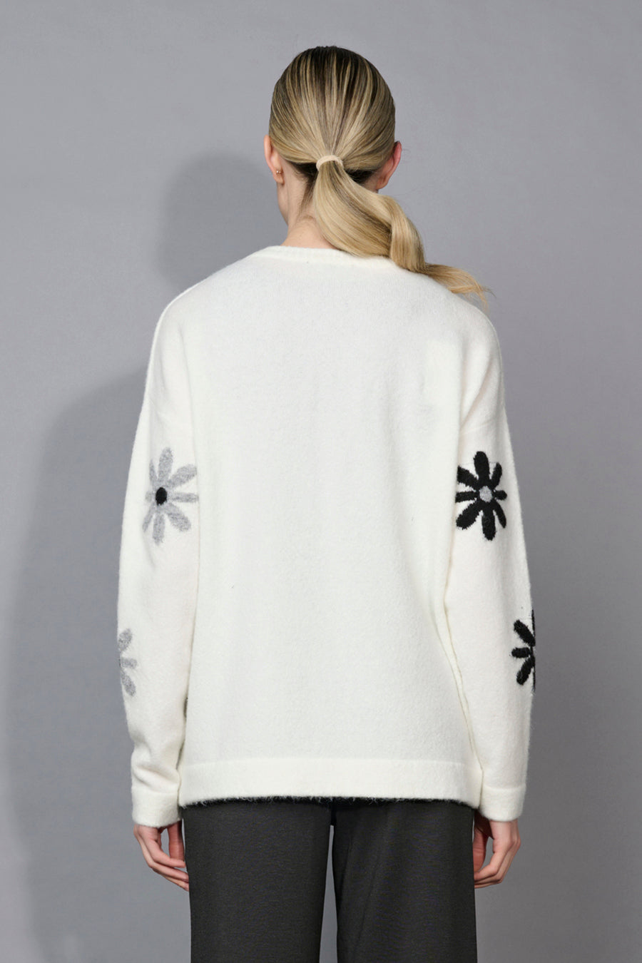 Who said flowers are suitable for warm season only? The Floral Top proves the opposite with its cloud-soft knit and delicate floral pattern, almost snow-flake looking. Available in 2 colors, this sweater-top offers versatility, warmth, and comfort. Whether you are going out or planning your office looks, the Floral Top is a safe choice for any occasion!