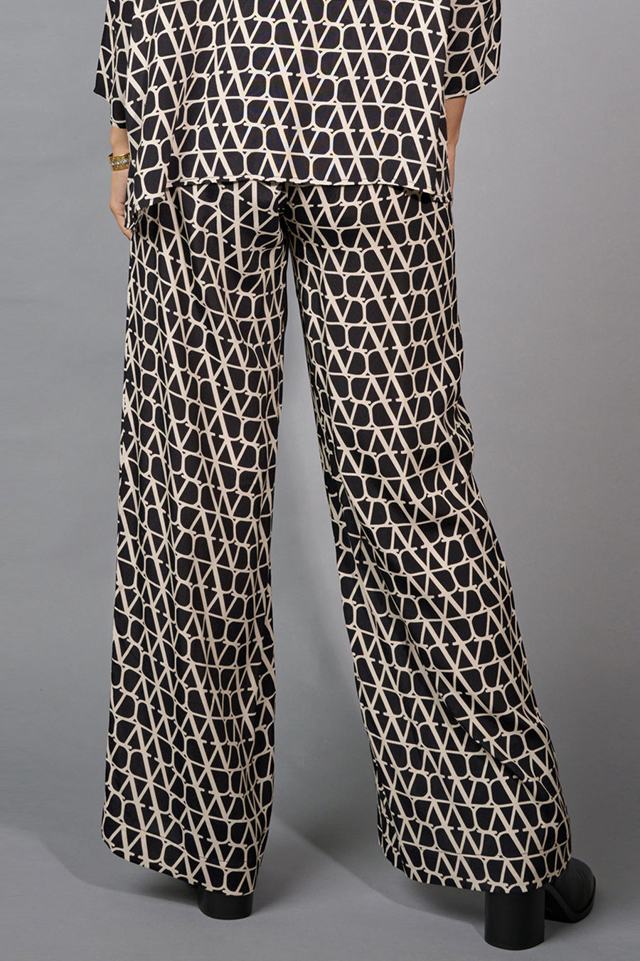 Style these Printed Wide-Leg Full-Length Pants with a matching 3/4 Sleeves Flowy Top and a pair of kitten-heel mules.
