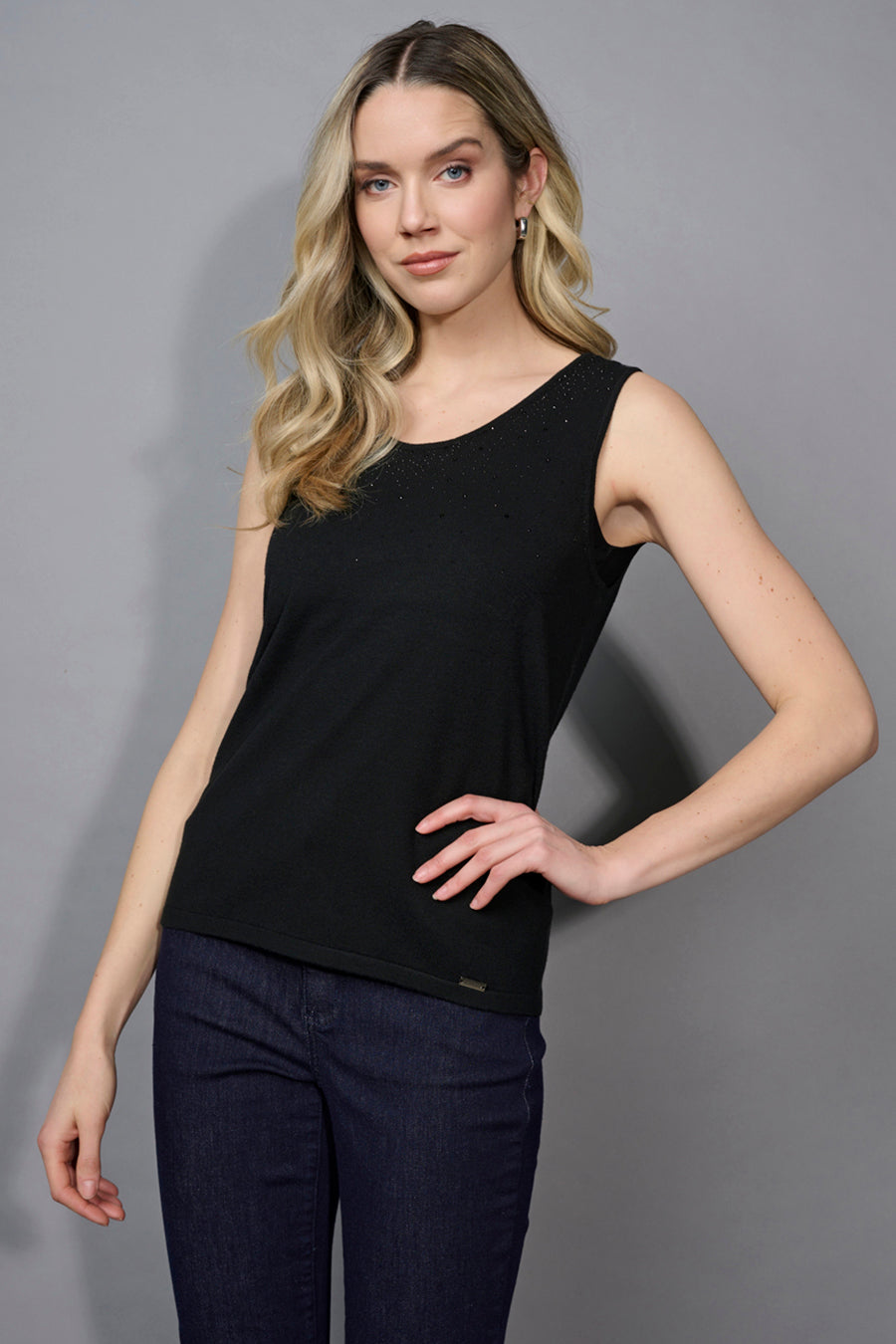 The Rhinestone Tank brings a polished shine to layering. Designed to stand alone or pair under jackets and cardigans, it features delicate rhinestone accents along the neckline for a touch of glam. A versatile essential with wear-anywhere appeal.