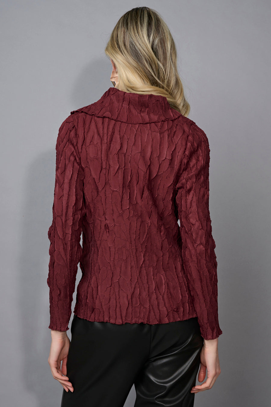 In size S, the Split Collar Pleated Top measures at 23.5 inches (59.7 cm) in length.