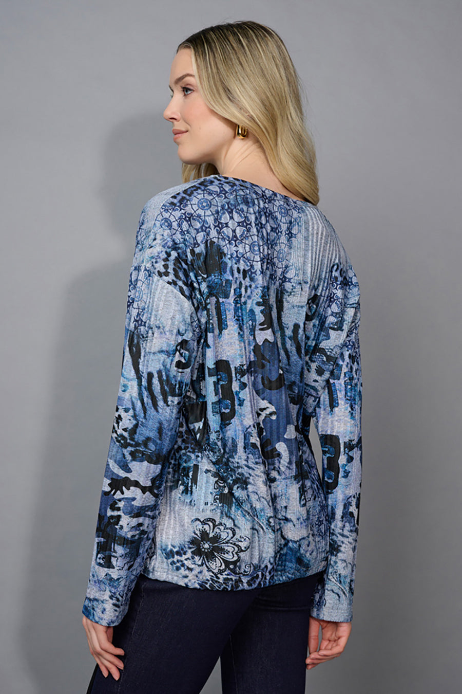A mix of shape and print - the V-Neck Drawstring Hem Printed Top features a flattering v-neckline and an adjustable drawstring hem. The denim multi print keeps things grounded yet stylish, making it a versatile pick. Easy to dress up or down, it’s a wardrobe go-to staple.