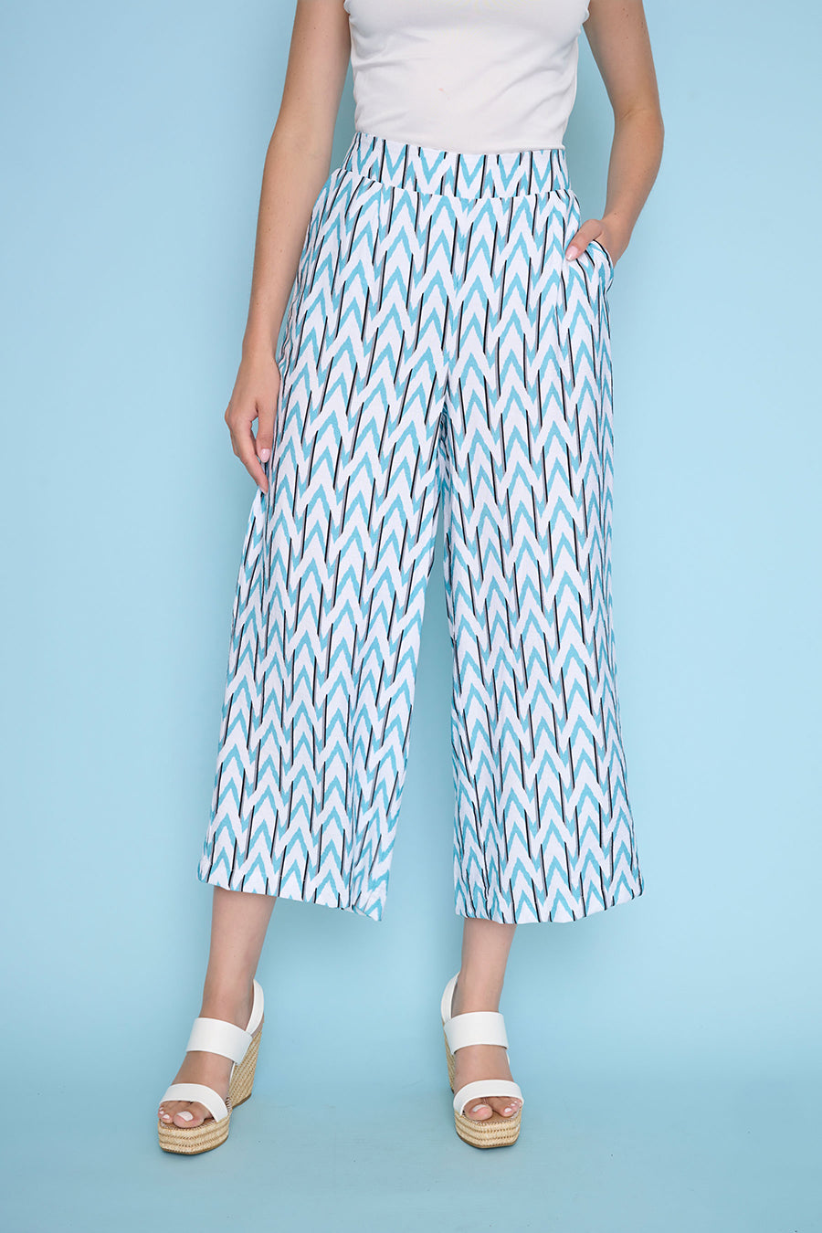 Zigzag Wide-Leg Cropped Pants