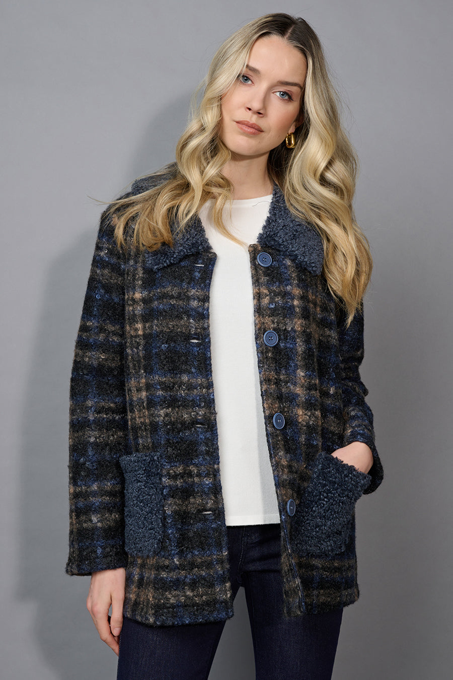 The Button-Front Checker Jacket is a fresh spin on heritage style with its navy multi check pattern. Button-front detailing and a tailored silhouette give it a classic feel with contemporary appeal. A must-have layer for those crisp autumn days.