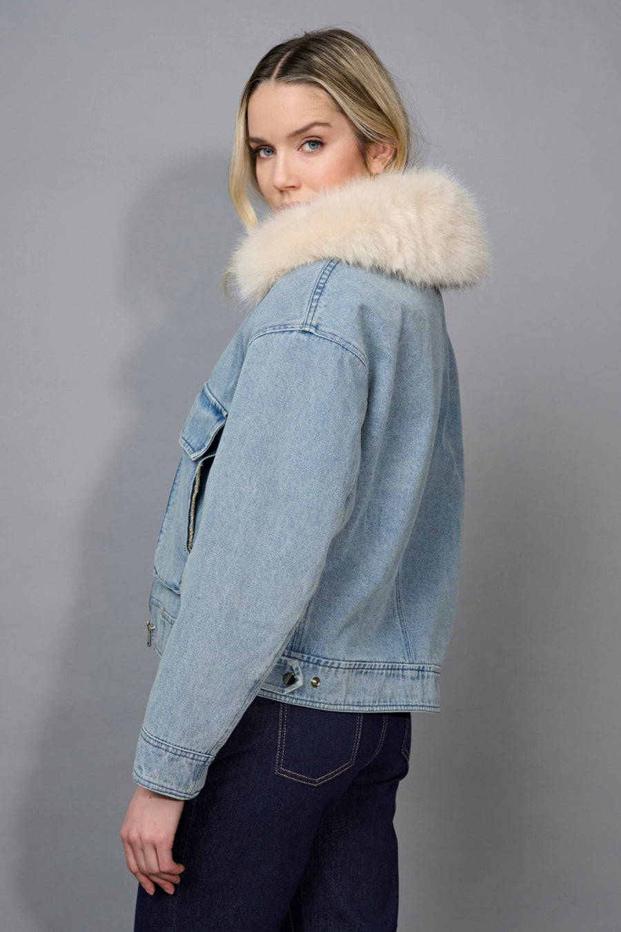 Features of the Faux-Fur Trim Zip-Front Denim Jacket: