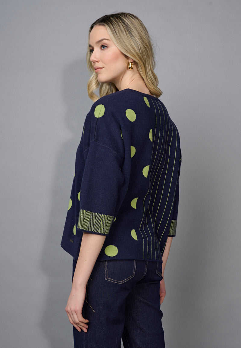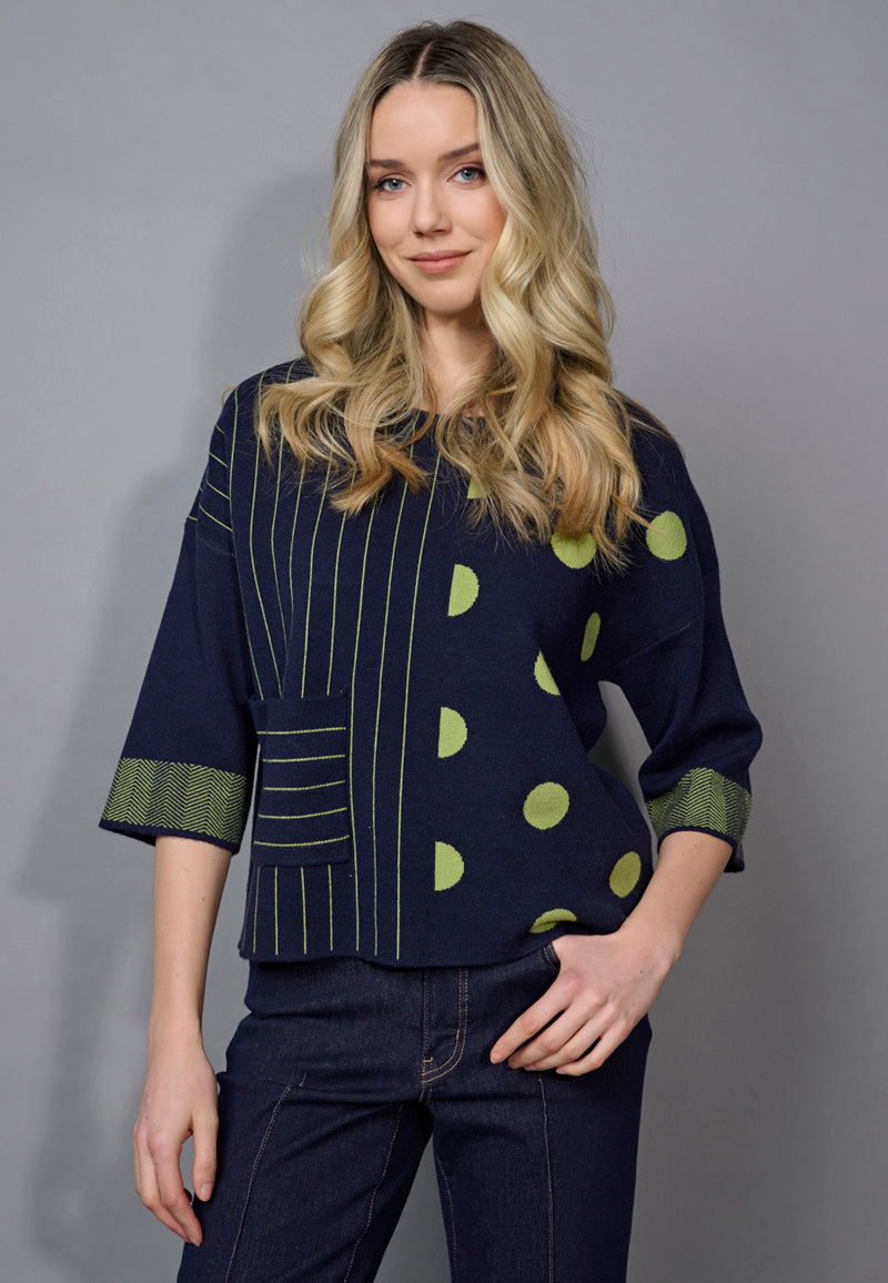 3/4 Sleeves Striped Polka-Dot Top