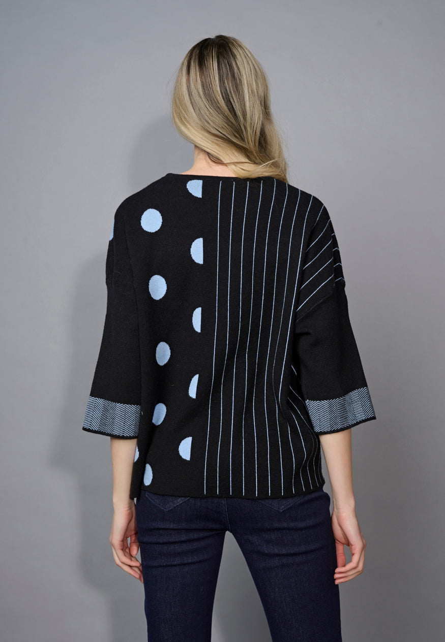 3/4 Sleeves Striped Polka-Dot Top
