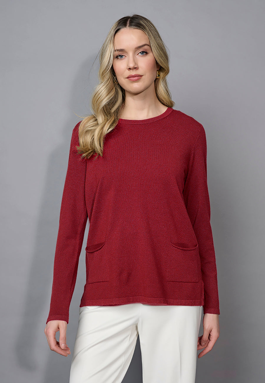 Simple with a twist, the Crew Neck Top With Pockets adds a functional note to a classic silhouette. Discreet front patch pockets lend a bit of dimension. A foundational, best-selling piece in soft seasonal tones.
