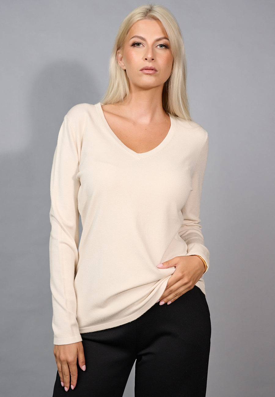 In size S, the Long-Sleeve V-Neck Top measures at 25 inches (63.5 cm) in length.