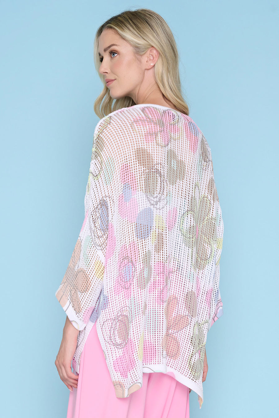 Ready to make a soft statement? The features an elegant openwork knit, a sweeping floral pattern, and a relaxed silhouette that feels cozy, expressive, and effortlessly stylish.
