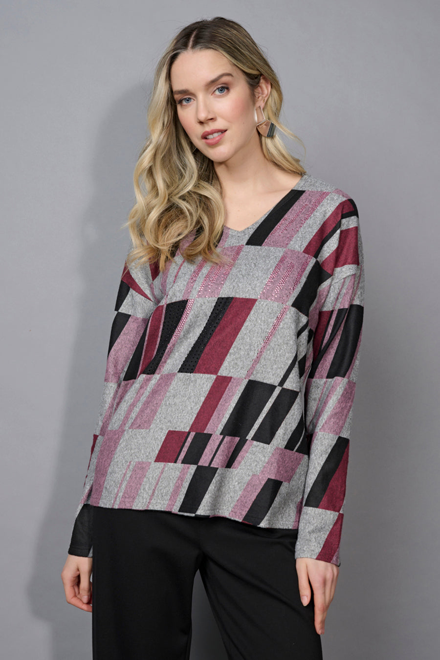 Pair this V-Neck Abstract Printed Top with leggings, jeans, and tailored pants – this style offers effortless chic anywhere you go.